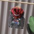 🛴Glugă detașabilă din material moale în carouri roșu-negru, cu inscripție.
