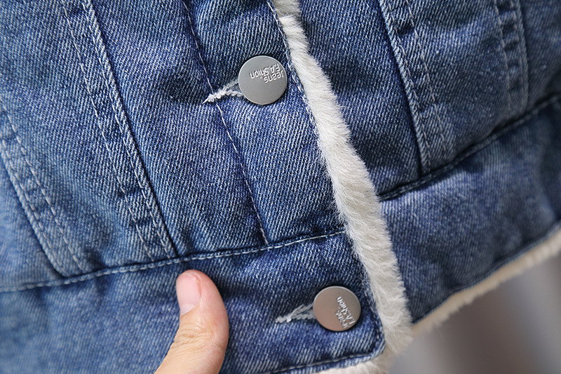 🤍 Guler clasic din denim și închidere cu nasturi metalici pentru îmbrăcare ușoară.