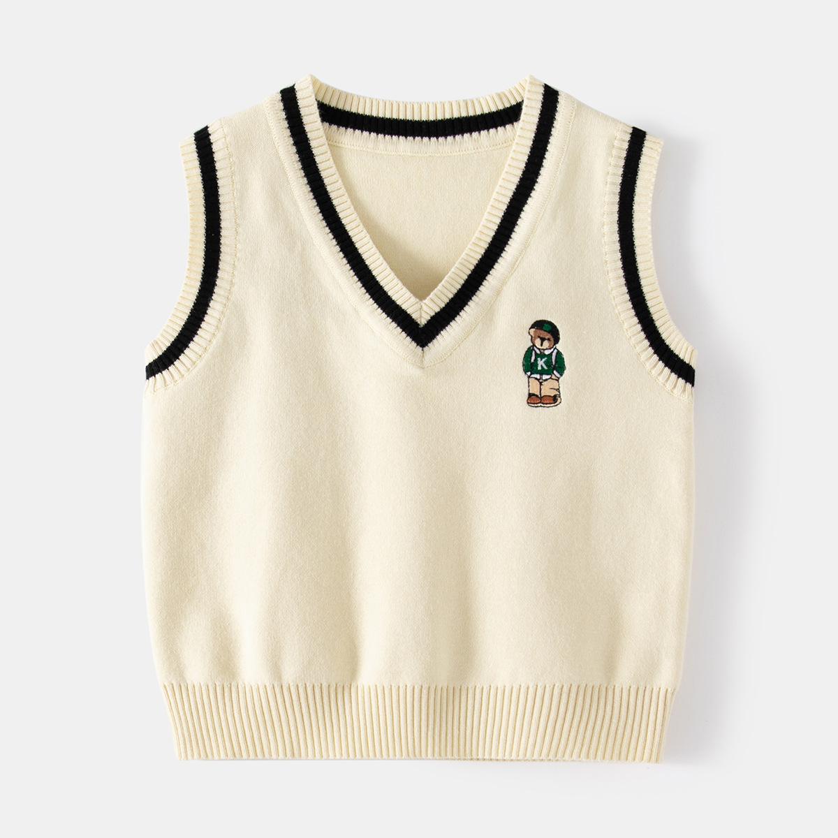 🎓 Vestă tricotată clasică cu broderie – elegantă, ordonată și extrem de potrivită pentru micii gentlemen cu gust pentru detalii.