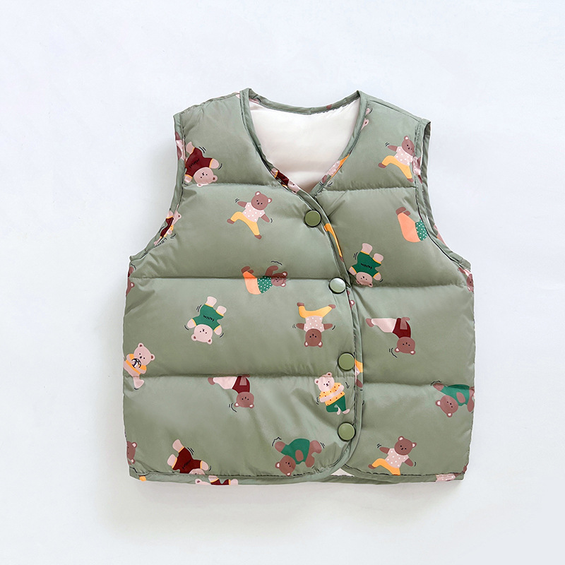 Vestă impermeabilă din puf de gâscă cu două fețe premium Green Bears