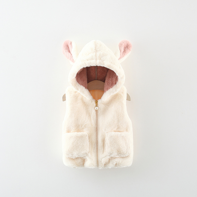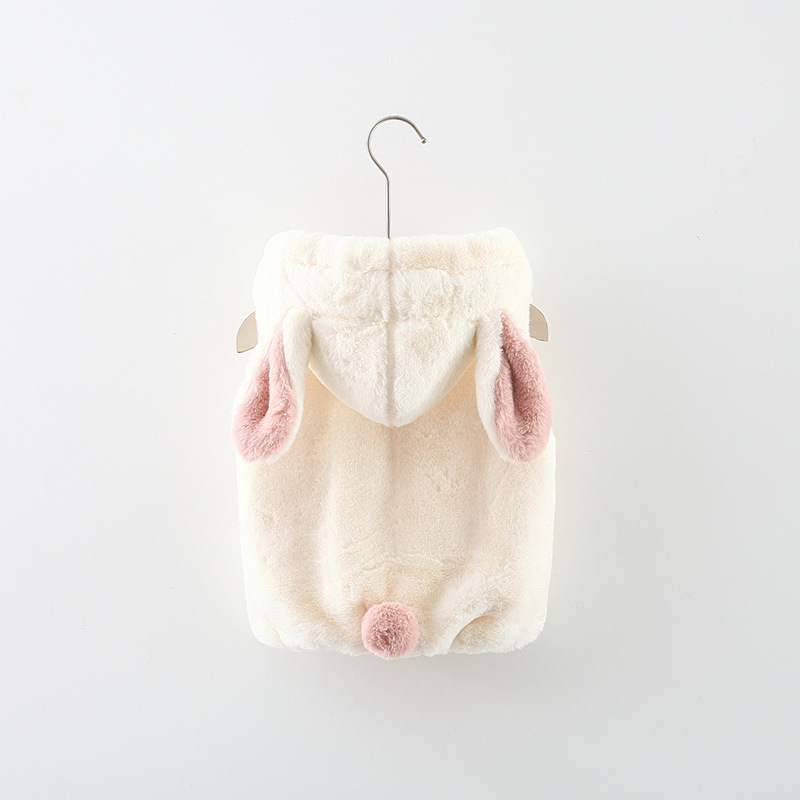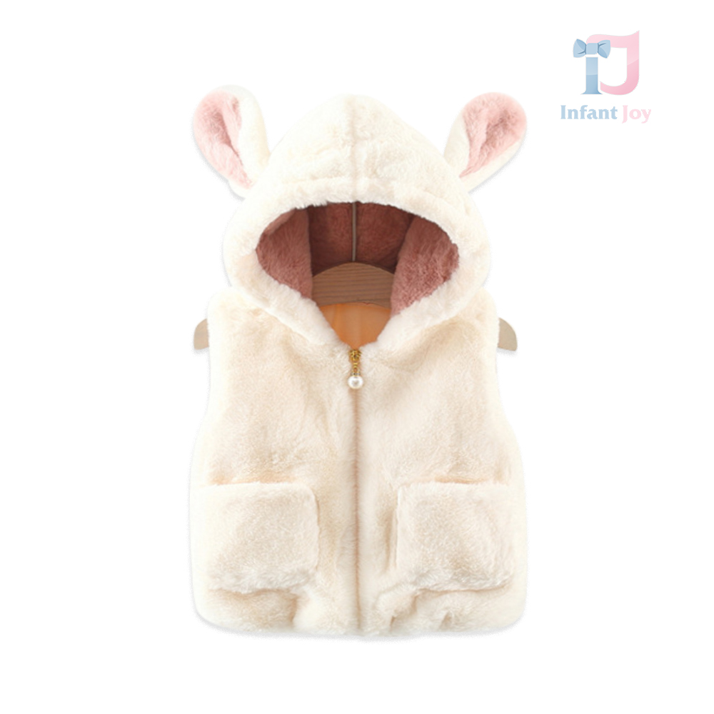 Vestă pufoasă cu glugă, buzunare, urechi și coadă Milky Bunny