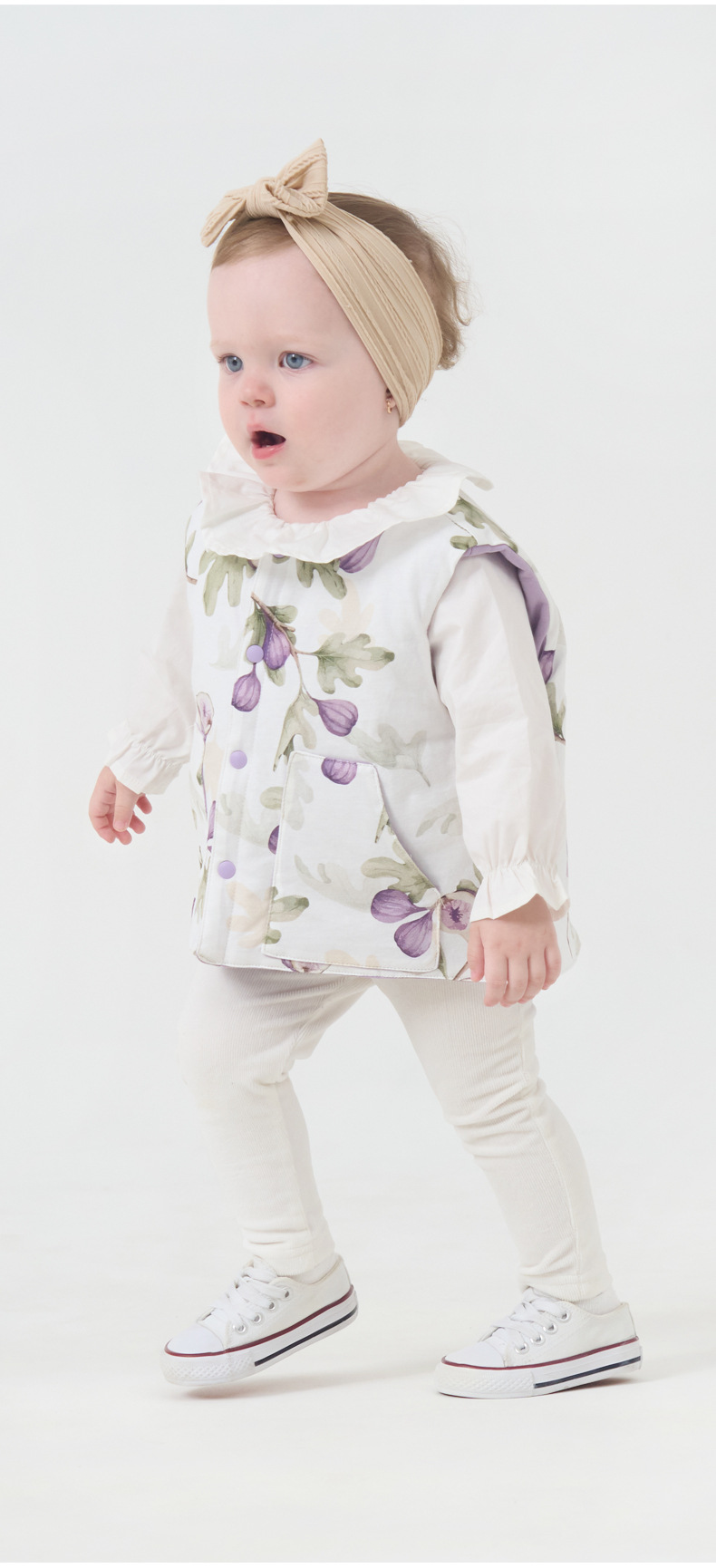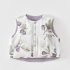 💜 Vesta este reversibilă – o parte are un imprimeu floral delicat cu smochine și frunze verzi pe un fundal crem, iar cealaltă este într-o nuanță elegantă de lavandă. Două stiluri într-un singur articol – alegerea între motive florale și un ton pastelat simplu.